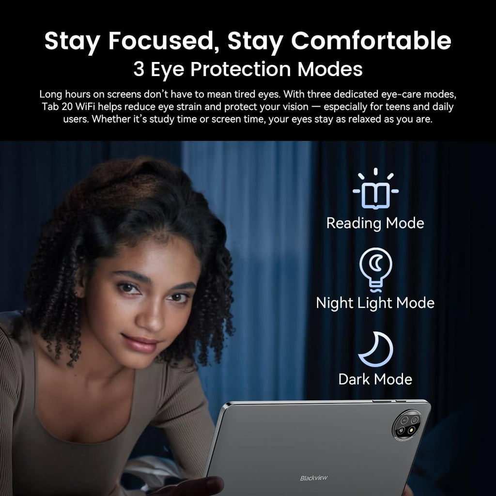 Dual Speakers with Smart-K Support, 3 Eye Protection Modes: With dual speakers powered by Smart-K, Tab 20 WiFi transforms sound into an immersive experience — every beat deeper, every word sharper. From movies to music to gaming, it’s audio that moves you, wherever you are. Long hours on screens don’t have to mean tired eyes. With three dedicated eye-care modes, Tab 20 WiFi helps reduce eye strain and protect your vision.