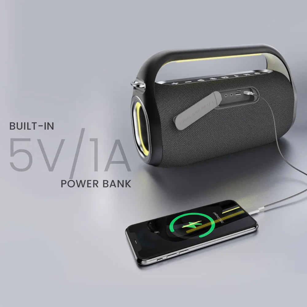 The HiFuture Music Box 100 speaker is not only about great sound, but also about everyday practicality. With the powerbank function, you can charge your devices, such as smartphones and tablets, directly from the speaker. The 1A output current allows for safe and efficient charging, which is ideal for long trips or outdoor excursions where access to a power source is limited.