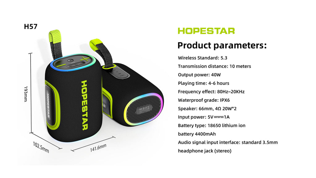 Experience music like never before with the Hopestar H57 – a powerful, portable speaker designed for both outdoor adventures and indoor entertainment. Built with a rugged design and advanced features, it delivers clear, dynamic sound wherever you go.