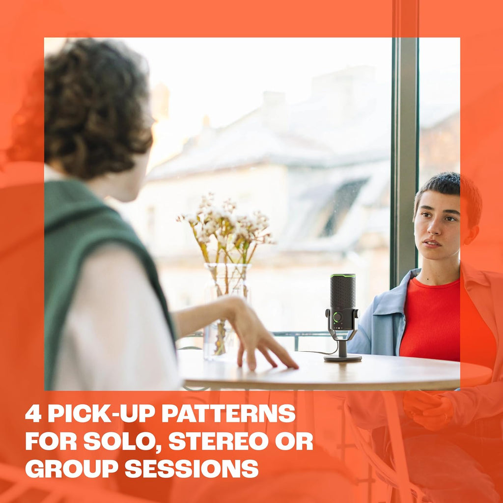 Featuring triple 14mm cardioid condenser microphones, this versatile mic captures every nuance of your voice with a wide, flat frequency range (50~16kHz), delivering crystal-clear audio whether you’re streaming solo or collaborating with others. Switch seamlessly between four selectable voice pick-up patterns with a single button, ensuring your sound is always optimized for any setup.