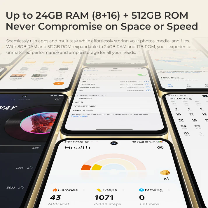 Massive 512GB Internal Storage – Store thousands of photos, videos, apps, and files; expandable up to 1TB via TF card