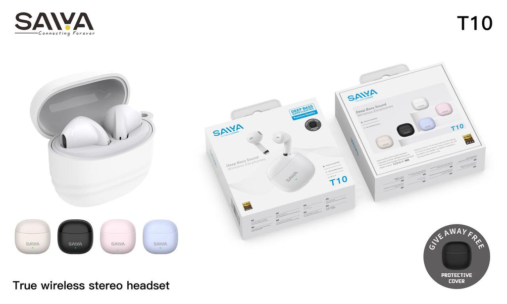 Enjoy premium wireless audio with the Saiya Buds T10, designed for everyday music, calls, and mobile use. These true wireless earbuds deliver clear sound, strong bass, and reliable Bluetooth connectivity, making them perfect for commuting, workouts, gaming, and daily use—especially for mobile users in Guyana.