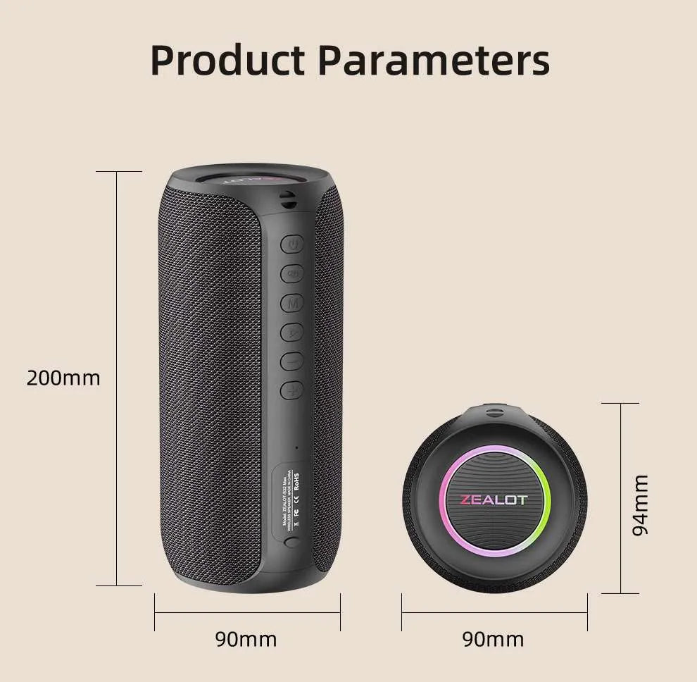 ZEALOT S69 Bluetooth Speaker with Microphone – Portable, Waterproof, 20W